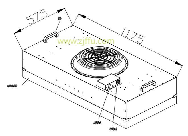 FFU標準尺寸有標準1175*1175*320,1175*875*320,1175*575*320,6155*615*320,575*575*320,如有需要可以定制不同的尺寸的FFU。