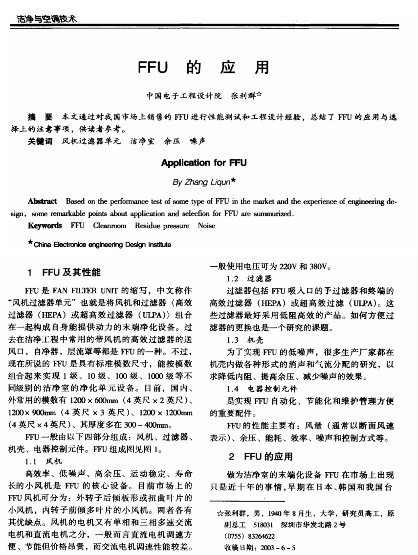 FFU的應用知識要文來自-空調與潔凈技術,本文以圖文形式講解FFU的應用
